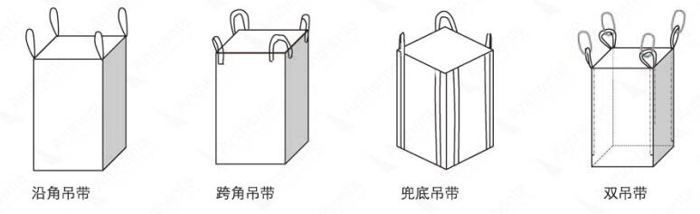 集裝袋的樣式多種多樣,可以根據客戶的實際要求來進行定制,但是它的標準樣式一般有以下幾種,下面給大家初略講解下。